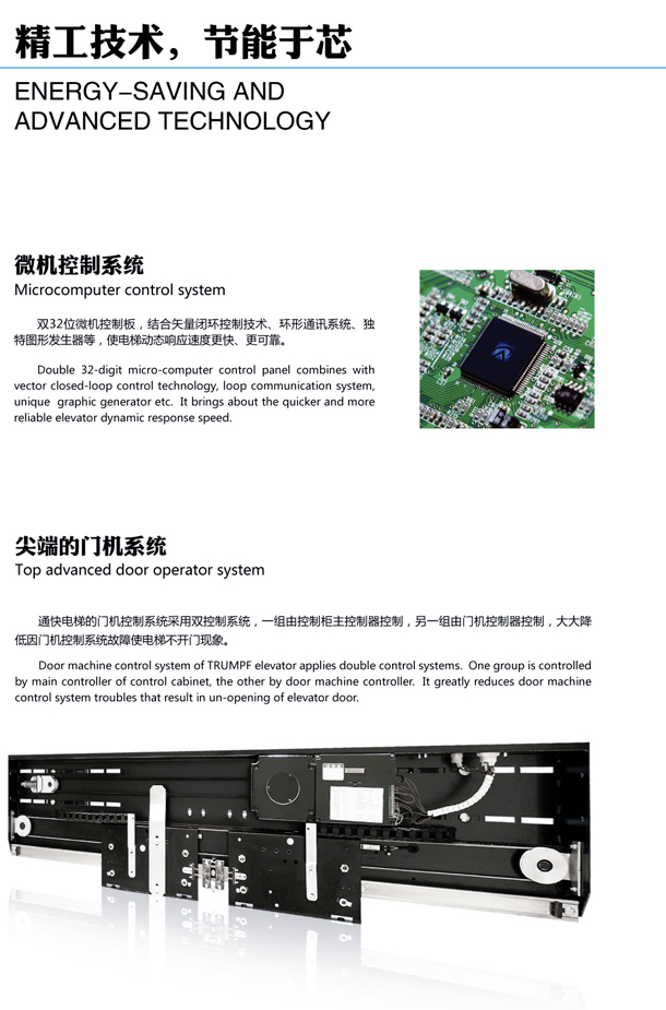 商洛菱通所提供產(chǎn)品的三大核心部件-“主機(jī)”、“門機(jī)”和“控制柜”以及四大安全部件-“安全鉗、“限速器”、緩沖器、"上行超速保護(hù)"均原廠原品牌并自主知識(shí)產(chǎn)權(quán)和專利技術(shù)。電梯加裝采用四大節(jié)能系統(tǒng),即能量回饋系統(tǒng)、永磁同步門機(jī)、無(wú)齒輪技術(shù)、LED照明系統(tǒng)、安全系統(tǒng)成熟。